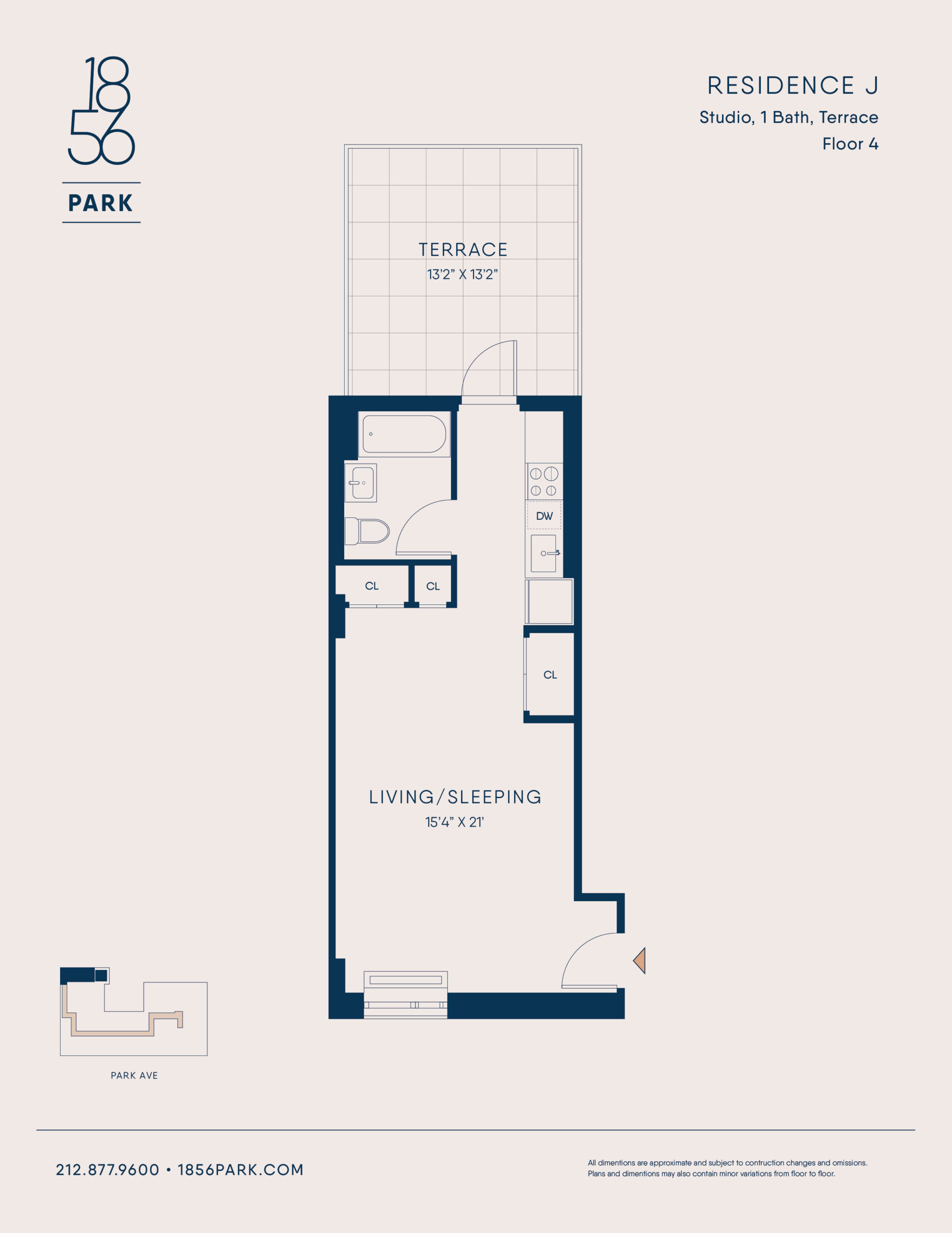 Studio, 1 Bath + Terrace